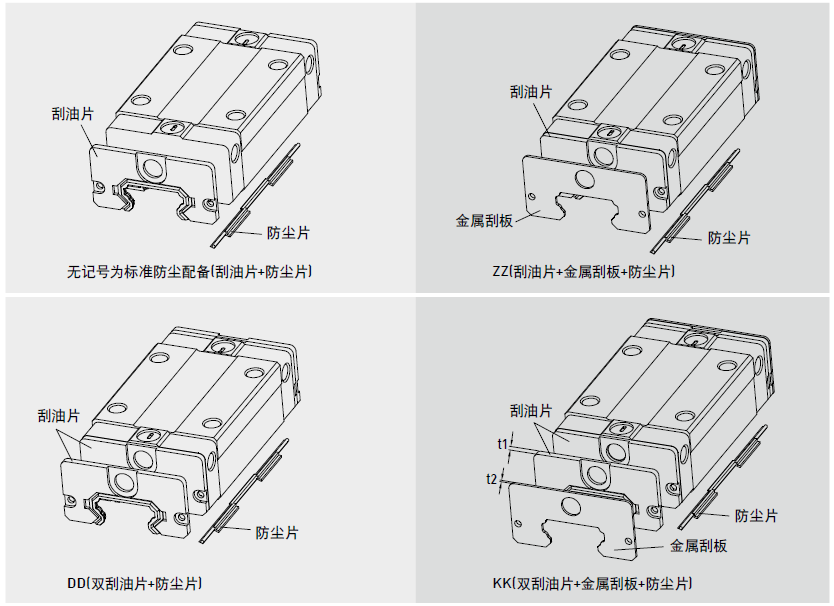 低組裝型滾珠直線導軌EG系列防塵配備代碼及說明
