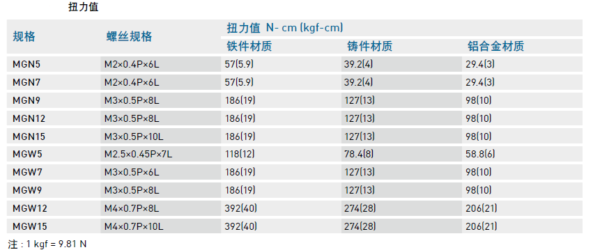 微型滾珠直線導(dǎo)軌MG系列安裝平面誤差對(duì)照表