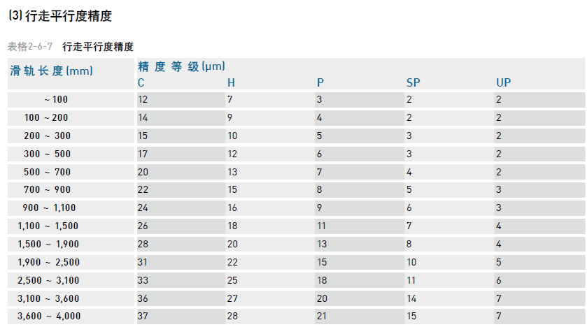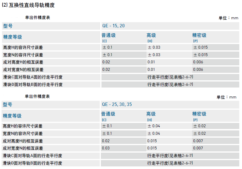 靜音式低組裝QE系列直線導軌精度等級對照表