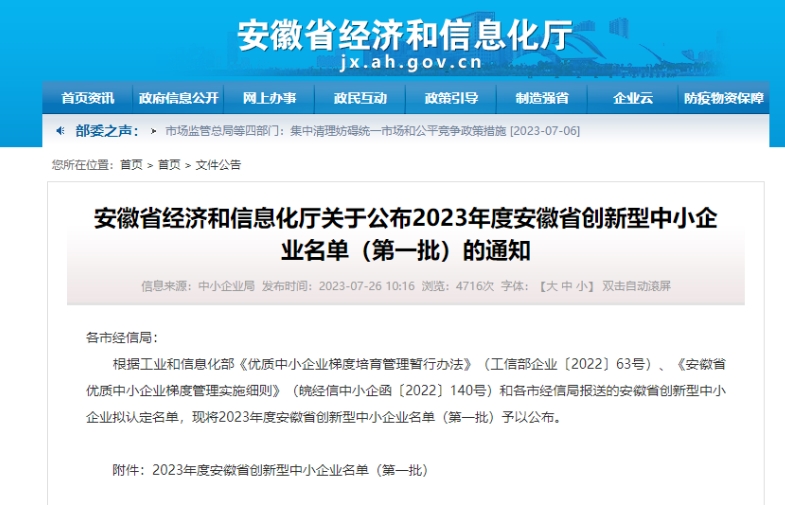 • 安徽省專精特新中小企業(yè)