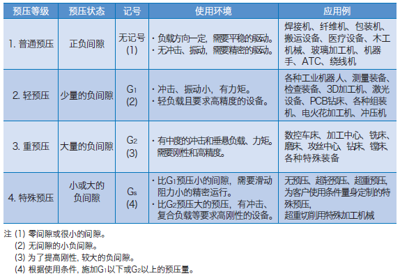 直線導(dǎo)軌的施加預(yù)壓方式有利用滾動體(鋼球或滾柱)消除間隙提高機(jī)械性精度, 或利用增加滾動體的直徑預(yù)先施于預(yù)壓, 提高直線導(dǎo)軌的剛性, 減少外部負(fù)載的變形量。