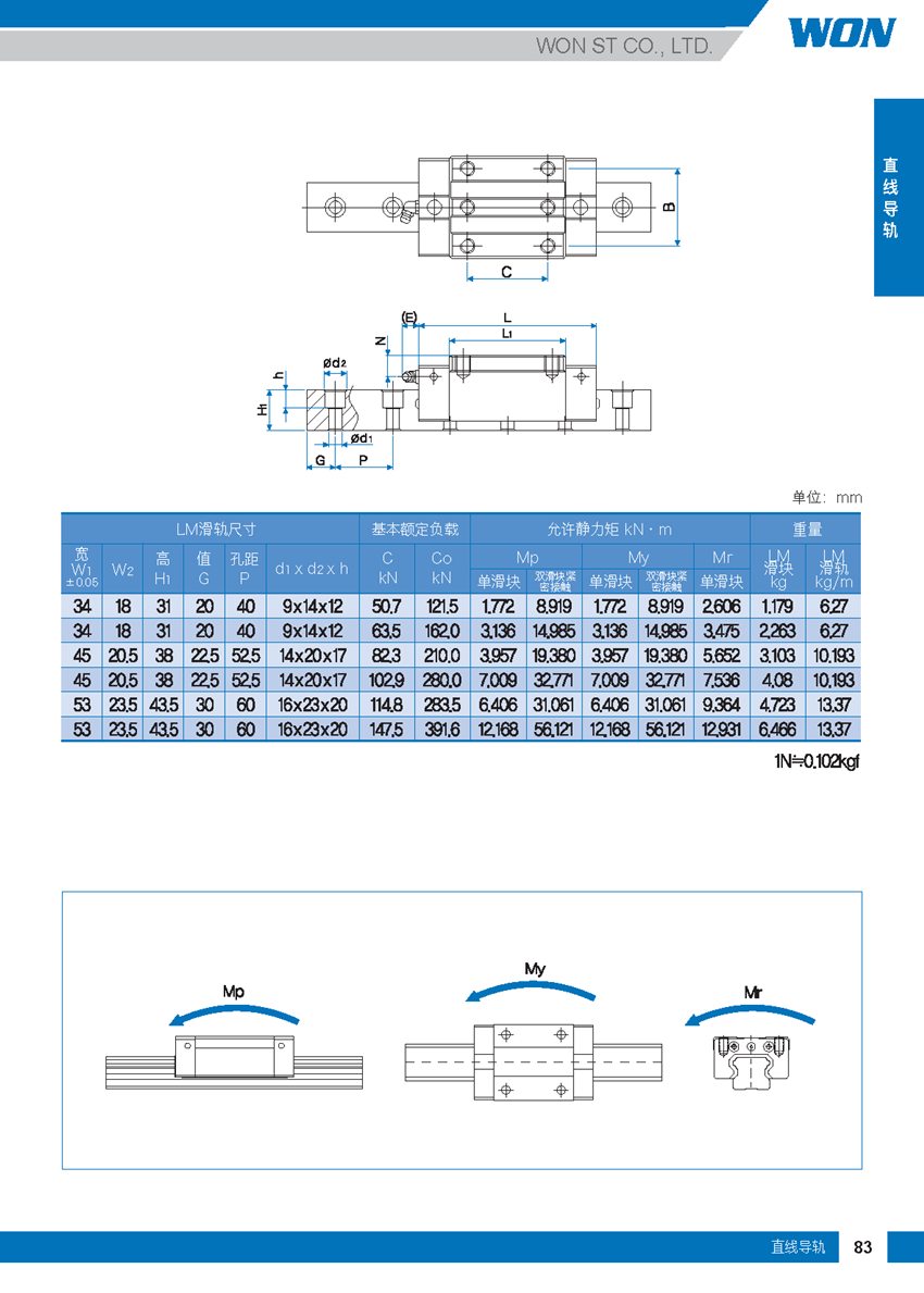 WON直線導(dǎo)軌R系列-重負(fù)載滾柱型